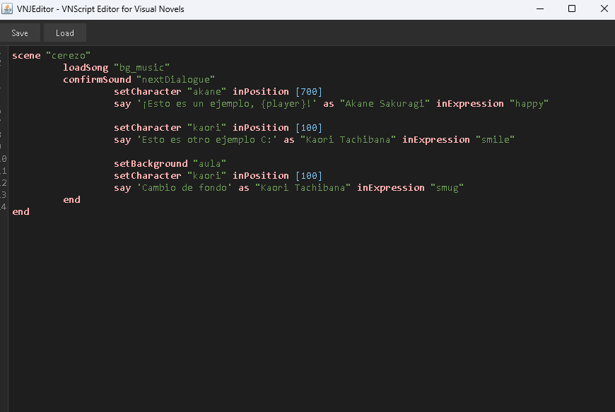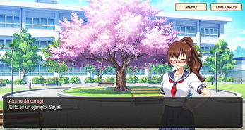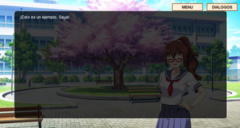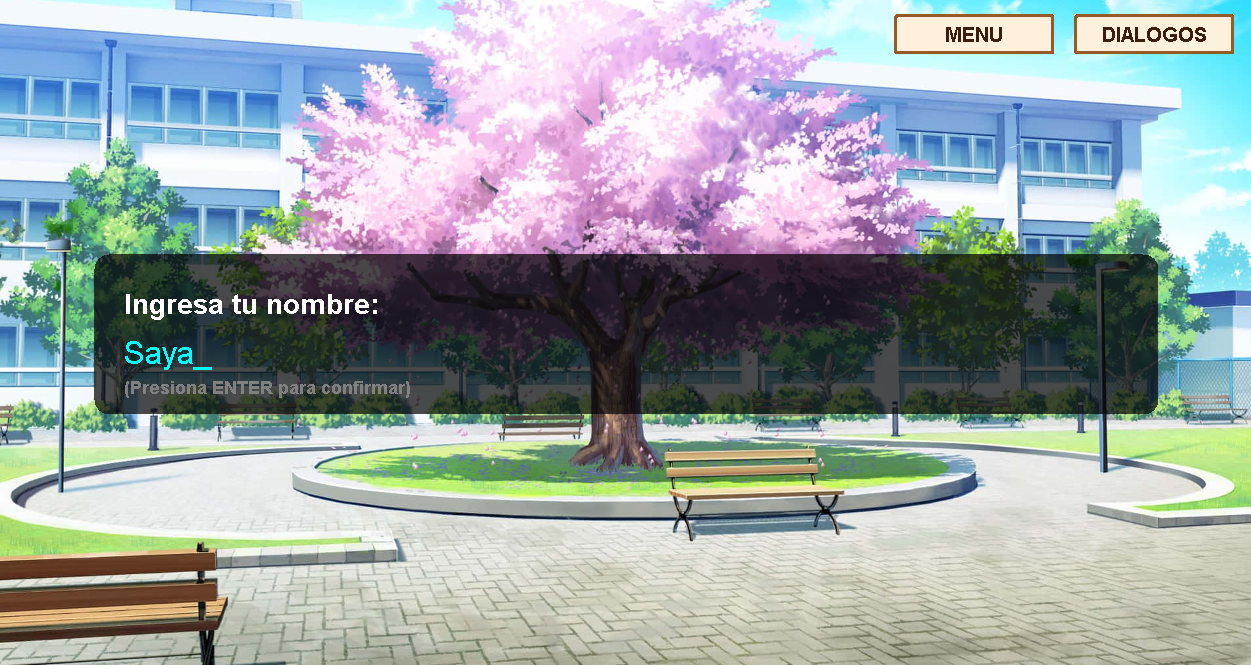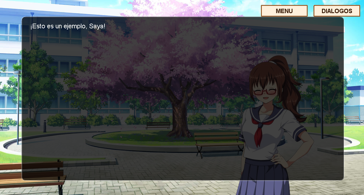 Esto es un motor de novelas visuales hecho en Java, y hace que puedas mostrar escenas con un fondo, un personaje y un cuadro de diálogo.